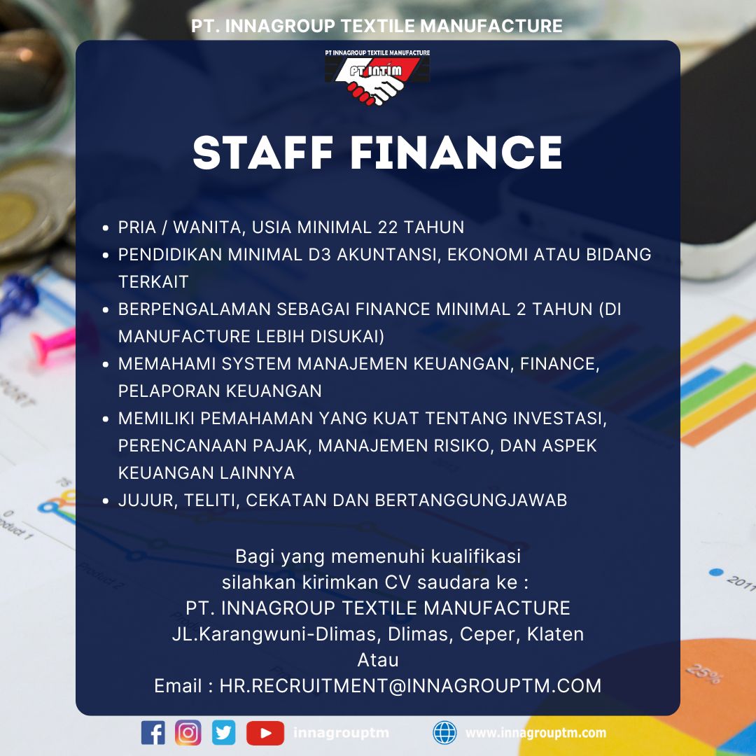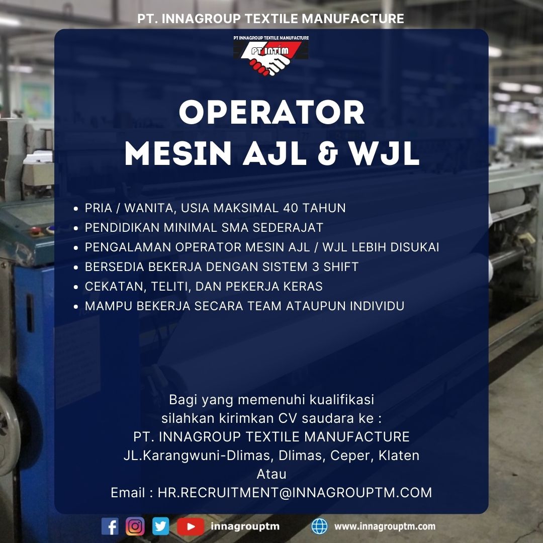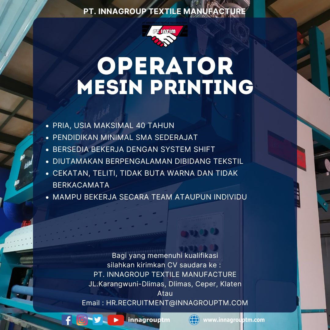 PT. INNAGROUP TEXTILE MANUFACTURE Adalah sebuah industri manufaktur dan sebagai perusahaan tekstil. PT. Innagroup Textile Manufacture di resmikan pada tgl 8 Januari 2017, di Dukuh Dlimas, Kelurahan Dlimas, Kecamatan Ceper, Kabupaten Klaten, Provinsi Jawa Tengah.
